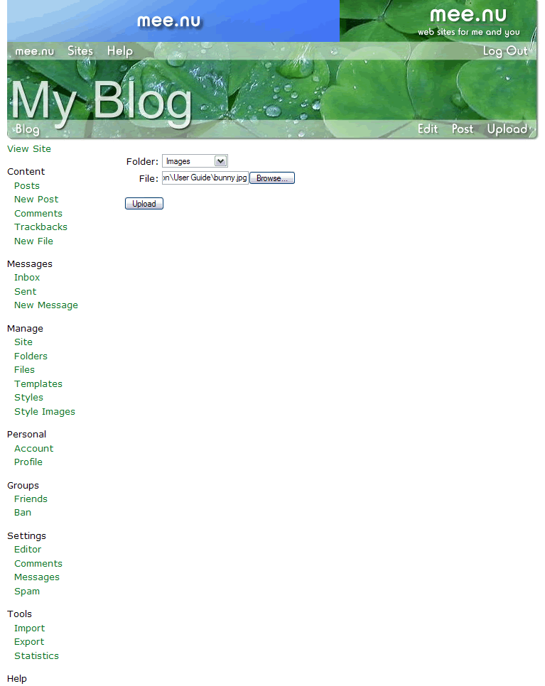 The other way you can do this is have the system create a smaller version of the photo for you. Click on Files in the side menu, then click on "images" (in the Path column) to view the files: